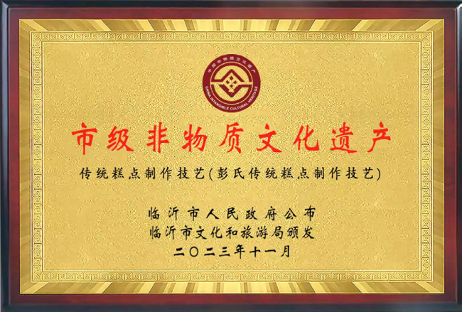 千磨万击还坚劲,任尔东西南北风。从走街串巷的路边摊到标准化的食品工厂,从单一的线下门店到产品销往全国各地,彭宝灯用多年的坚守与拼搏,让彭氏糕点走出沂南、香飘四方。2021年,“彭氏传统糕点制作技艺”成功入选沂南县第六批非物质文化遗产名录。这份荣誉,是对彭氏四代手艺人的认可,更是对彭宝灯在困境中破局、在坚守中前行的最好褒奖。工厂的建立,不仅让家族手艺在现代化生产中焕发新生,更为周边村民提供了不少就业岗位,促进了当地的经济发展。彭宝灯在踏踏实实做糕点的同时,也用实际行动诠释了创业者的责任与担当。